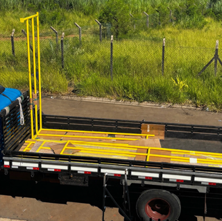 Pintura Eletrostática em corrimão de 6 metros na cor Amarelo Munsell 5Y 8/12 , em resina Poliéster.
